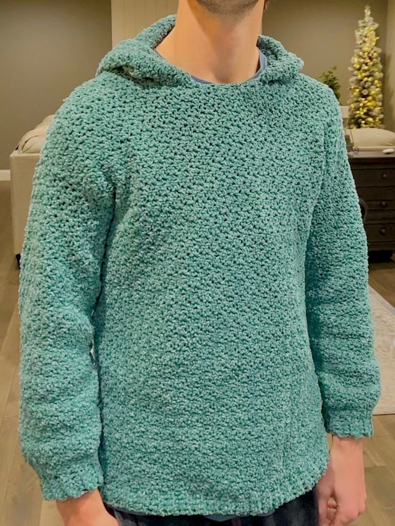 I made a sweatshirt for my boyfriend and used a stitch that was less airy when I used it for my dads sweater vest BUT I used different yarns for each project. If I would’ve known my boyfriends hoodie would have been more airy using the stitch, I would’ve chosen a different stitch to use or even used a lower hook #.
